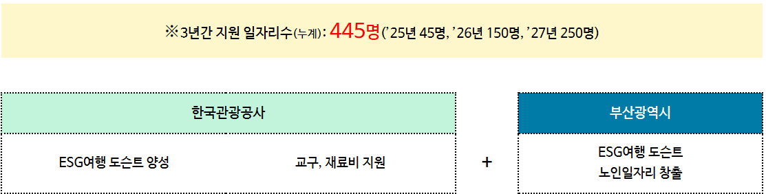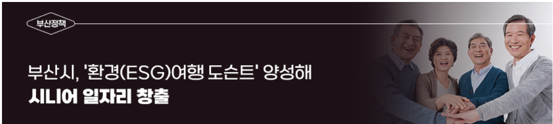 부산시가 한국관광공사와 협력해 ‘환경(ESG)여행 도슨트’ 시니어 일자리 445개를 창출합니다.