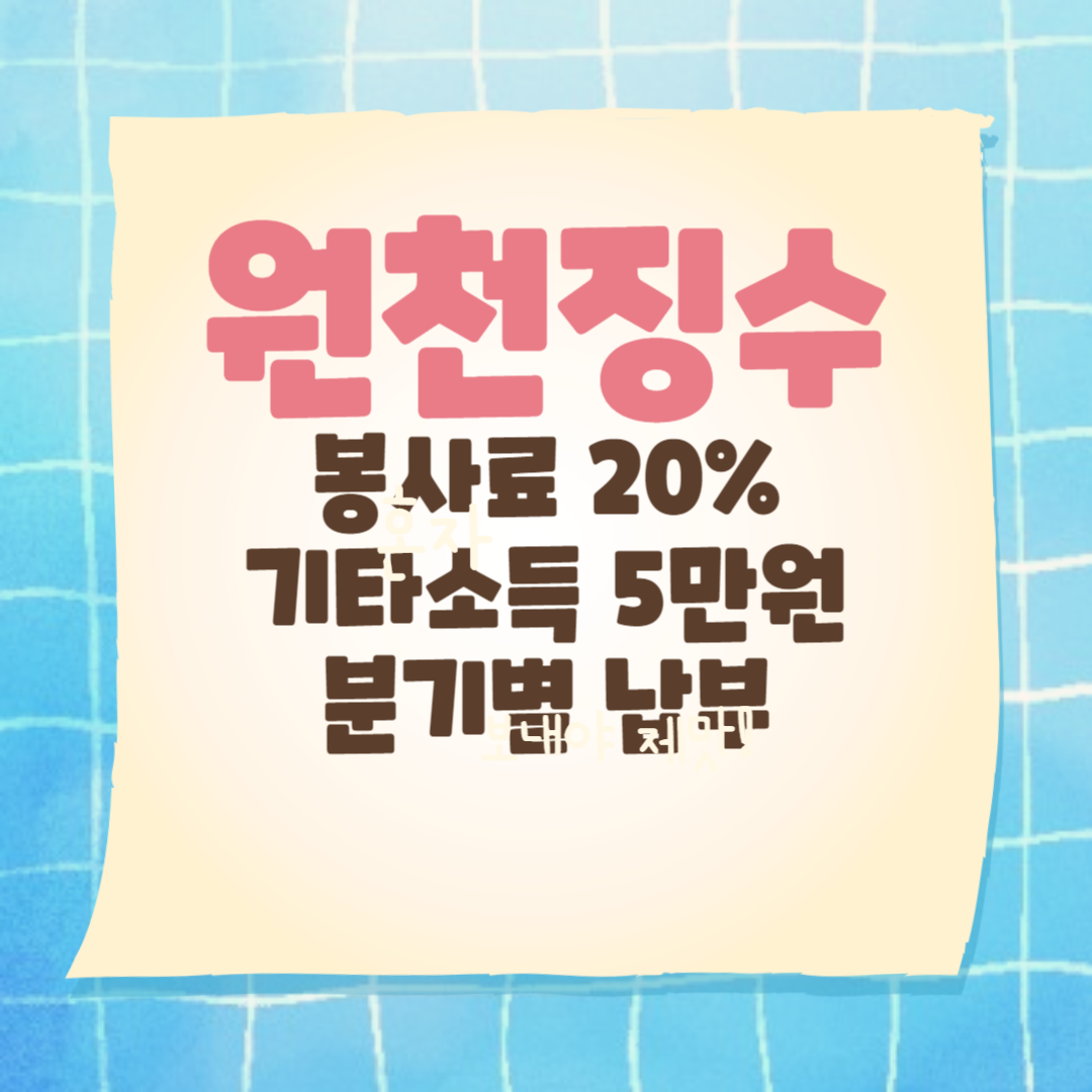 원천징수를 하는 조건에는 여러 가지 있는데 그중에 봉사료가 공급가액의 20%를 초과하면 소득세를 원천징수를 해야 하고, 기타 소득이 5만 원 이하이면 과세최저한에 해당하여 원천징수를 하지 않습니다. 그리고 일정 조건 만족 시 반기별로 납부가 가능합니다