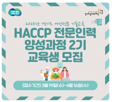 「2025년 경기도 여성전문기술교육 HACCP 전문인력 양성과정」 2기 참여자를 모집합니다.